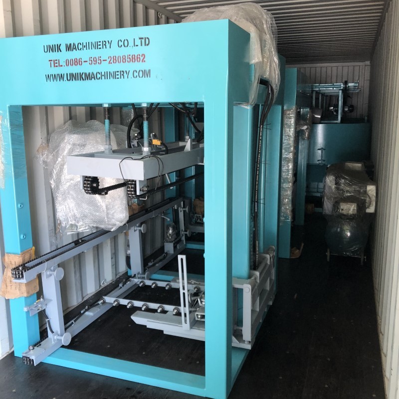 Машината за бетонски блокови UNT600 е дизајнирана за висина на производот од 40–220 mm, Рамката на машината се состои од заварена конструкција со помош на пресечен челик за да се обезбеди оптимална ригидност и пристапност, Контролата на функциите и движењата на машината се контролирани со систем Omron PLC. Сите движења, временски функции, цели за позиционирање и вибрирачки параметри може да се прилагодат како променливи на лесен и безбеден начин преку операциониот панел.